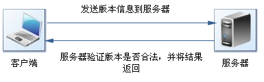 (1)所有服務均采用身份驗證保障,驗證過程采用雙層加密(MD5、DES),確保系統(tǒng)安全 (2)帳號登錄認證加密,包括以下三步。 第一步:客戶端連接服務器成功后,發(fā)送客戶端版本信息到服務器,服務器驗證客戶端是否合法,并將結果返回給客戶端,如下圖;