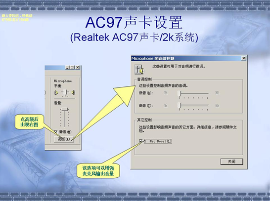 請注意:如果用的筆記本,不要用筆記本自帶的音響和MIC,外接設備參考第3條