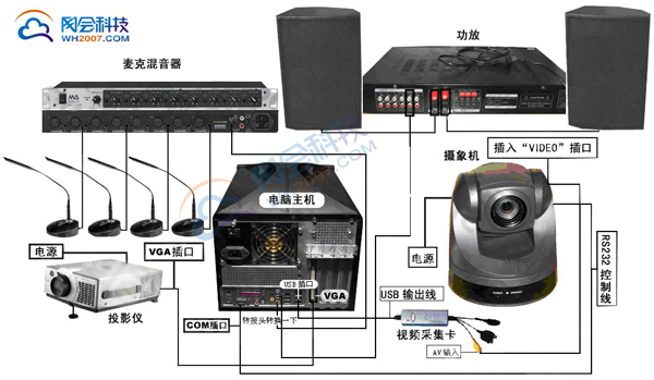 會(huì)議室應(yīng)用:選擇性地選配網(wǎng)會(huì)視頻采集卡、網(wǎng)會(huì)會(huì)議攝像機(jī)(高清1080P)、投影儀或液晶顯示器作為視頻設(shè)備,選擇網(wǎng)會(huì)會(huì)議麥克風(fēng)、音箱作為音頻設(shè)備。