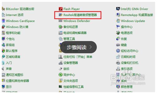 2. 在控制面板中打開(kāi)高清音頻管理器。即圖中標(biāo)注區(qū)域。